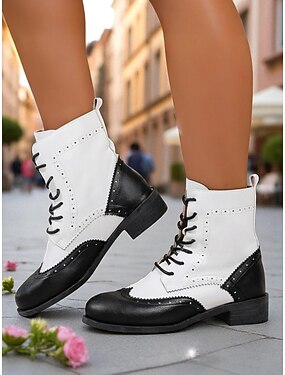 stivaletti brogue da donna in similpelle nera e bianca vintage anni '50 con lacci, perfetti per lo street style e l'abbigliamento casual da ufficio