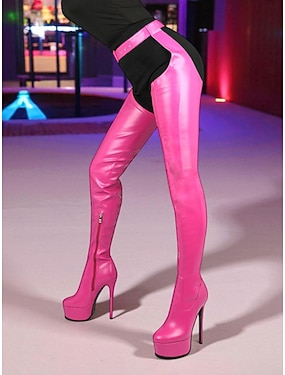 stivali alti fino alla coscia in vernice rosa shocking da donna - stivali sexy con tacco a spillo sopra il ginocchio per outfit da discoteca e da festa