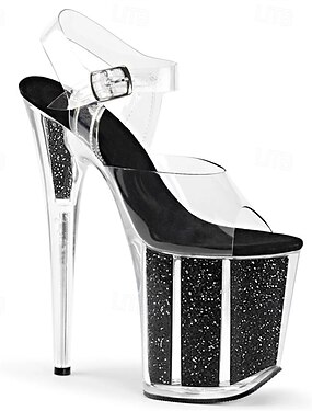 Sandali da donna con plateau trasparente e tacco alto, impreziositi da strass – sandali aperti in punta con cristalli, perfetti per cocktail party e discoteche. &eventi serali glamour
