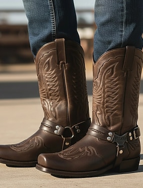 stivali da cowboy robusti da uomo con esclusivo design western: calzature comode e alla moda per l'outdoor