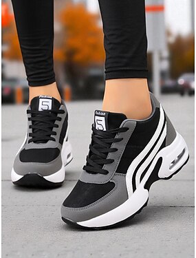 scarpe da corsa robuste da donna nere e grigie – scarpe da ginnastica con lacci in rete traspirante, scarpe sportive casual da passeggio per palestra, viaggi e uso quotidiano
