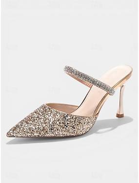 Sandali con tacco a spillo dorati glitterati da donna, décolleté a punta con tacco a spillo per cocktail party e matrimoni. &eventi serali