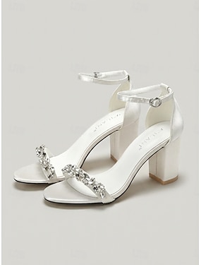 Sandali da donna bianchi con tacco a blocco e strass – eleganti sandali con cinturino alla caviglia e punta aperta, perfetti per i cocktail party. &eventi serali