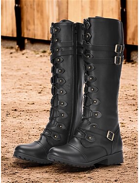 stivali da combattimento gotici vintage da donna - stivali al ginocchio con cinturino con fibbia nera per cosplay e abbigliamento quotidiano