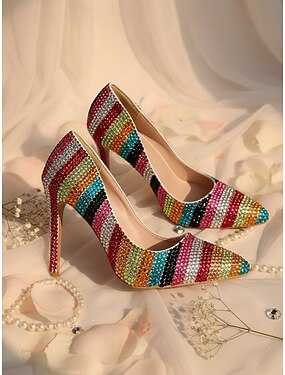 Per donna Cocktail Club Feste Strass Cristallo Fibbia Stiletto Punta a Punta Moda Carino Lussuoso PU Fibbia Argento Rosso arancione Nero e Viola
