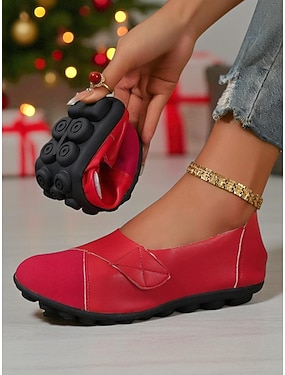 ballerine rosse flessibili e pieghevoli da donna con suola morbida e design comodo slip-on, scarpe casual leggere per Natale, lavoro, viaggio &abbigliamento quotidiano