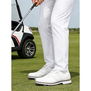 scarpe da golf bianche da uomo, struttura leggera e traspirante, suola con grip stabile, stile sportivo pulito per campi da golf e abbigliamento outdoor