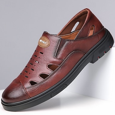 sandali casual da uomo in similpelle marrone, scarpe da esterno traspiranti con allacciatura elastica per le vacanze al mare e le avventure estive