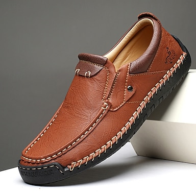 Scarpe casual da uomo marroni senza lacci, comode e cucite a mano, leggere ed eleganti, ideali per l'uso quotidiano, i viaggi, la guida, l'ufficio, il tempo libero all'aperto e uno stile casual rilassato.