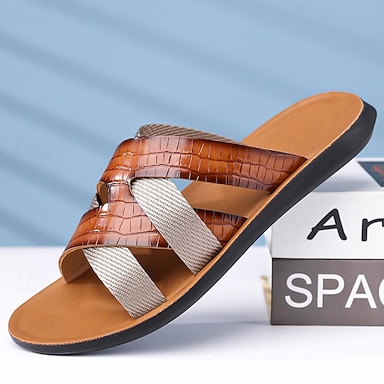 Sandali da uomo marroni in similpelle con cinturino incrociato, leggeri e comodi, ideali per vacanze al mare, viaggi su isole, relax in riva al mare, tempo libero in resort e stile casual per la stagione calda.