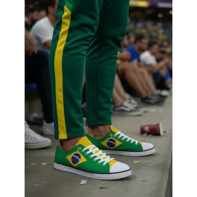 Sneakers da uomo in tela verde per tifosi di calcio: scarpe casual stringate nei colori del Brasile, perfette per le partite, gli eventi sportivi, lo streetwear e l'uso quotidiano.