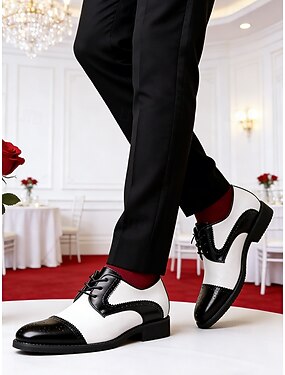 scarpe oxford da uomo in similpelle bianche e nere, eleganti scarpe da sposa per lo sposo e la festa di nozze