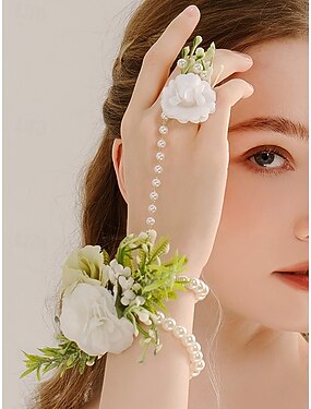 Set di fiori all'occhiello e damigella d'onore per donna, disponibili in vari colori, in poliestere, perfetti per matrimoni e feste.