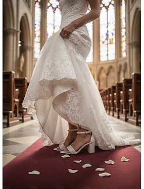 sandali da sposa da donna con tacco a blocco color avorio e cinturino alla caviglia &abbellimenti in cristallo - eleganti scarpe da sposa aperte per spose alla moda