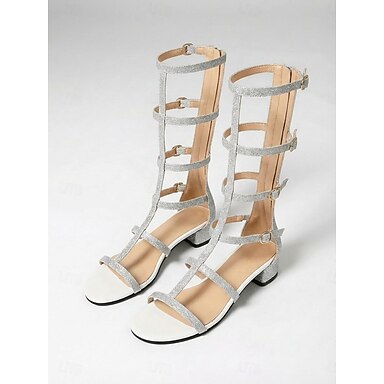 Sandali gladiatore da donna alti fino al ginocchio – scarpe con tacco basso in stile romano con cinturini, eleganti sandali estivi per vacanze all'aperto, resort e viaggi.