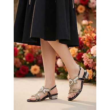 Sandali da donna con tacco a blocco decorati, scarpe eleganti con cinturino alla caviglia e punta aperta per la madre della sposa, matrimoni in giardino &eleganti eventi all'aperto