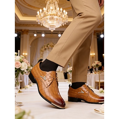 scarpe oxford da uomo in similpelle marrone con stampa coccodrillo – design di alta qualità per matrimoni, eventi aziendali e occasioni formali