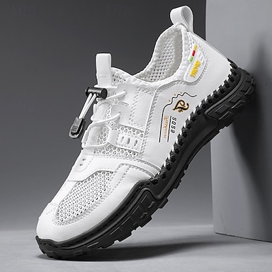 Scarpe da trekking da uomo bianche in similpelle: scarpe da ginnastica traspiranti per attività all'aperto, comode per trekking e avventura.
