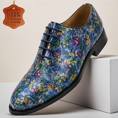 Scarpe Oxford da uomo con stampa floreale, stringate, eleganti, vintage, perfette per invitati a matrimoni, banchetti, feste, ricevimenti ed eventi serali.
