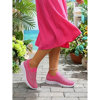 scarpe da ginnastica slip-on da donna con strass rosa - tomaia in Flyknit traspirante, leggere &scarpe sportive casual scintillanti per camminare, fare jogging, viaggiare, indossare ogni giorno