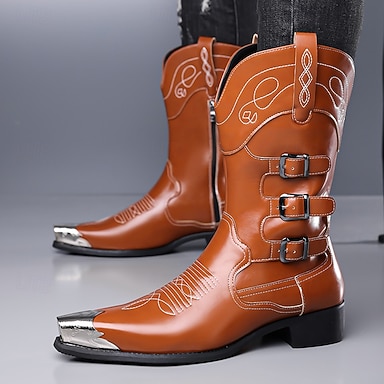 stivali da cowboy da uomo in pelle marrone chiaro – stile western con dettagli eleganti, perfetti per matrimoni in campagna ed eventi informali