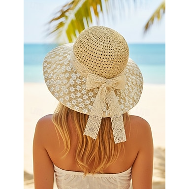 Cappello da sole da donna in stile boho intrecciato con fiocco, leggero, a tesa larga, ideale per l'estate, la spiaggia, il tempo libero, i viaggi, le vacanze, i resort e le attività all'aperto.