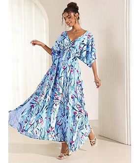 Per donna Abito lungo Abito lungo Abito linea A Elegante Da cerimonia Appuntamento Standard Floreale Mezza manica A V Blu Estate