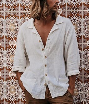 Per uomo Camicia camicia di lino Maglietta informale Camicia con bottoni Camicia di cotone Fede Hawaiano Per eventi Bianco Rosa Azzurro Manica lunga Collo ripiegabile Primavera & Autunno Abbigliamento
