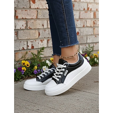sneakers nere con plateau da donna: scarpe comode, allacciate e dallo stile street moderno, per camminare, viaggiare, andare a scuola e per l'uso quotidiano