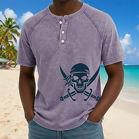 Per uomo Nautico Costumi da pirata Lavato Maglietta Top Henley Camicia lavata Manica Corta Vintage Designer Casual Casuale Quotidiano All'aperto Estate Primavera Tutte le stagioni Blu chiaro Viola