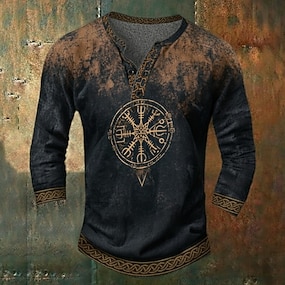 Per uomo Vintage Bussola Maglia Henley Maglietta Manica Lunga Manica 3/4 Vintage Quotidiano Casual Casuale Ferie Uscire Primavera & Autunno Tutte le stagioni Marrone Scuro Henley Maglietta Henley