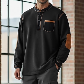 Per uomo Maglia Henley a nido d'ape Maglietta Manica Lunga Henley Inverno Autunno & Inverno Tutte le stagioni Tinta unica Semplice Moda Designer Casual Blocco di colore Bottoni All'aperto Casuale