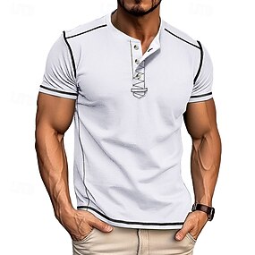 Per uomo Maglietta Maglia Henley Camicia a Maniche Corte Manica Corta Girocollo Estate Semplice Moda Designer Essenziale Puro Vacanza Streetwear Uscire Nero Bianco Blu marino scuro Maglietta Top per