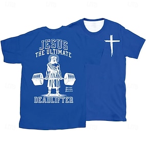 Maglietta di Gesù della Bibbia per Uomini Maglietta a Maniche Corte Maglietta a Stampa 3D Collo Giro Designer Casual Festa Vacanza Blu Chiaro Nera Bianca Estiva Primaverile Abbigliamento