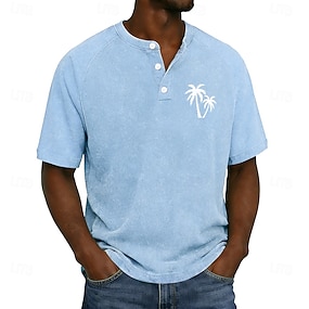Per uomo Albero di Cocco Vintage Maglietta Top Henley Camicia lavata Manica Corta Vintage Designer Casual Casuale Quotidiano All'aperto Estate Primavera Tutte le stagioni Blu chiaro Viola Grigio