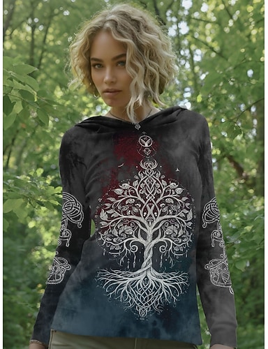 Per donna Maglietta Stampato Grafico Piante Vintage Elegante Classico Manica Lunga Con Cappuccio Top Regolari Quotidiano Weekend Blu Nero Bianco Rosso Primavera