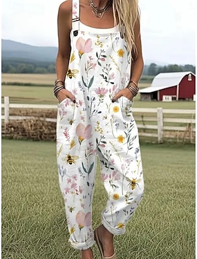 Per donna Salopette Attivo Floreale Senza Maniche Coulisse con tasca Vacanza Streetwear Vestibilità comoda Rosso Blu marino Verde Estate