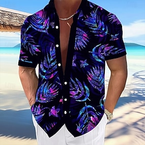 Per uomo Foglia di palma Piante Tropicali Camicia hawaiana estiva Camicia con Bottoni Camicia con colletto alla coreana Manica Corta Hawaiano Vacanza Abbigliamento Quotidiano Abbigliamento mare