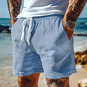 Per uomo Pantaloncini Waffle Pantaloncini da tuta Shorts Bermuda Shorts da Spiaggia Elastico in vita Coulisse Semplice Comodità Sportivo Lunghezza al ginocchio Quotidiano Ferie Spiaggia Vacanza Stile