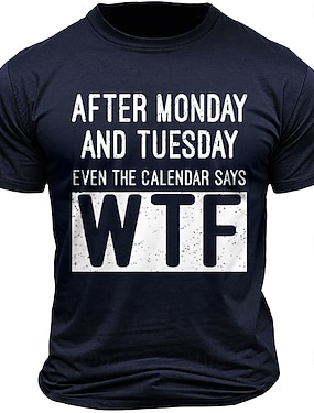 Maglietta Grafica Divertente per Uomini 'Dopo Lunedì e Martedì Anche Il Calendario Dà WTF' Stampa Umorismo da Lavoro a Maniche Corte
