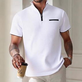 Per uomo Magliette Polo a Nido d'Ape Testurizzato Casuale Ferie Bavero Zip a un quarto Manica Corta Moda Essenziale Semplice Zip a un quarto Estate Vestibilità regolare Blu Nero Bianco Beige Grigio