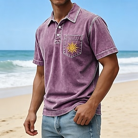 Per uomo Sole Camicia lavata con acido 100% cotone Manica Corta Magliette polo Bavero Hawaiano Casual Athleisure Abbigliamento da vacanza Tasca Stampa 3D Bottoni Primavera & Estate Blu Rosso Verde