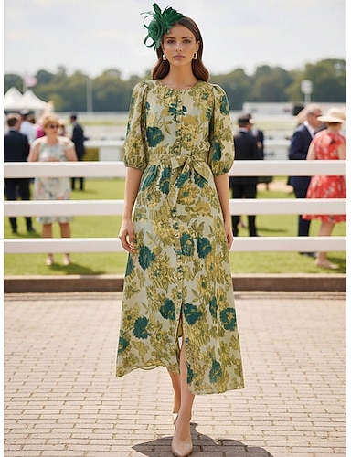 Linea ad A Lunghezza alla caviglia Abito Formale Abiti da Cocktail Elegante Mezza Manica Girocollo Matrimonio Cocktail party Jacquard con Fiocco/Fiocchi
