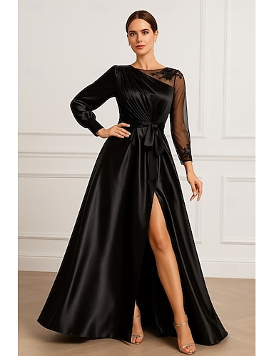 Linea ad A Lunghezza al pavimento Abito da Sera Da principessa Abito formale Elegante Spacco Alto Manica Lunga Scollo Illusione Matrimonio Formale Tasca Raso con Arricciato