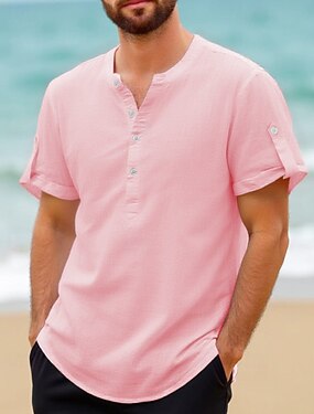Per uomo Camicia Camicia di lino Camicia popover Camicia casual Camicia di cotone Semplice Vacanza Streetwear Nero Bianco Rosa Cachi Manica Corta Colletto alla coreana Estate Abbigliamento