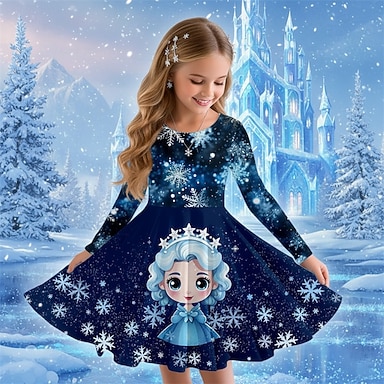 ragazze' 3D A quadri Fiocco di neve Abito fiocco di neve Abito con balze Manica lunga Stampa 3D Autunno Inverno Da mare Sportivo Giornaliero stile sveglio Informale Bellissimo Bambino 3-12 anni Abito
