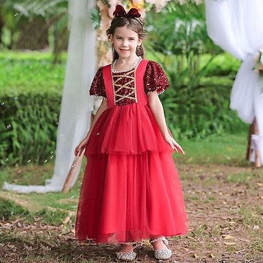 Abito da damigella d'onore bambina Ragazze Abito formale Abiti da sposa Feste Matrimonio Formale Adorabile Principessa Bello Patchwork Rete Tinta unica Manica Corta Girocollo Blu Rosso Dai 4 anni in
