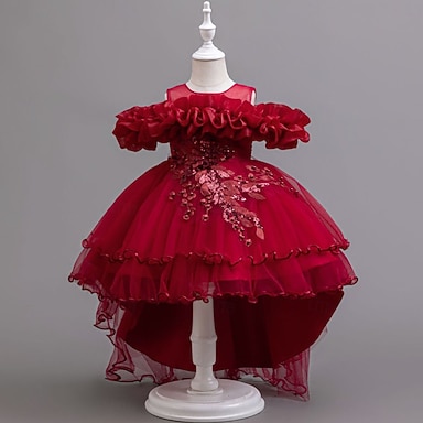 Abito da damigella d'onore bambina bambini Da ragazza Abito formale Abito da sera Prestazioni Matrimonio Feste Elegante Bellissimo Con lustrini Retato Floreale Senza maniche Colletto Mao Rosso