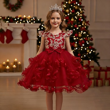 ragazze' 3D A quadri Fiocco di neve Abito fiocco di neve Abito con balze Manica lunga Stampa 3D Autunno Inverno Da mare Sportivo Giornaliero stile sveglio Informale Bellissimo Bambino 3-12 anni Abito