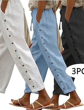 multipack 3 pezzi pantaloni da donna 100% cotone pantaloni estivi pantaloni casual vacanza basic casual quotidiano lunghezza alla caviglia naturale tinta unita tasche laterali bottone laterale comfort traspirabilità anelastico quotidiano weekend